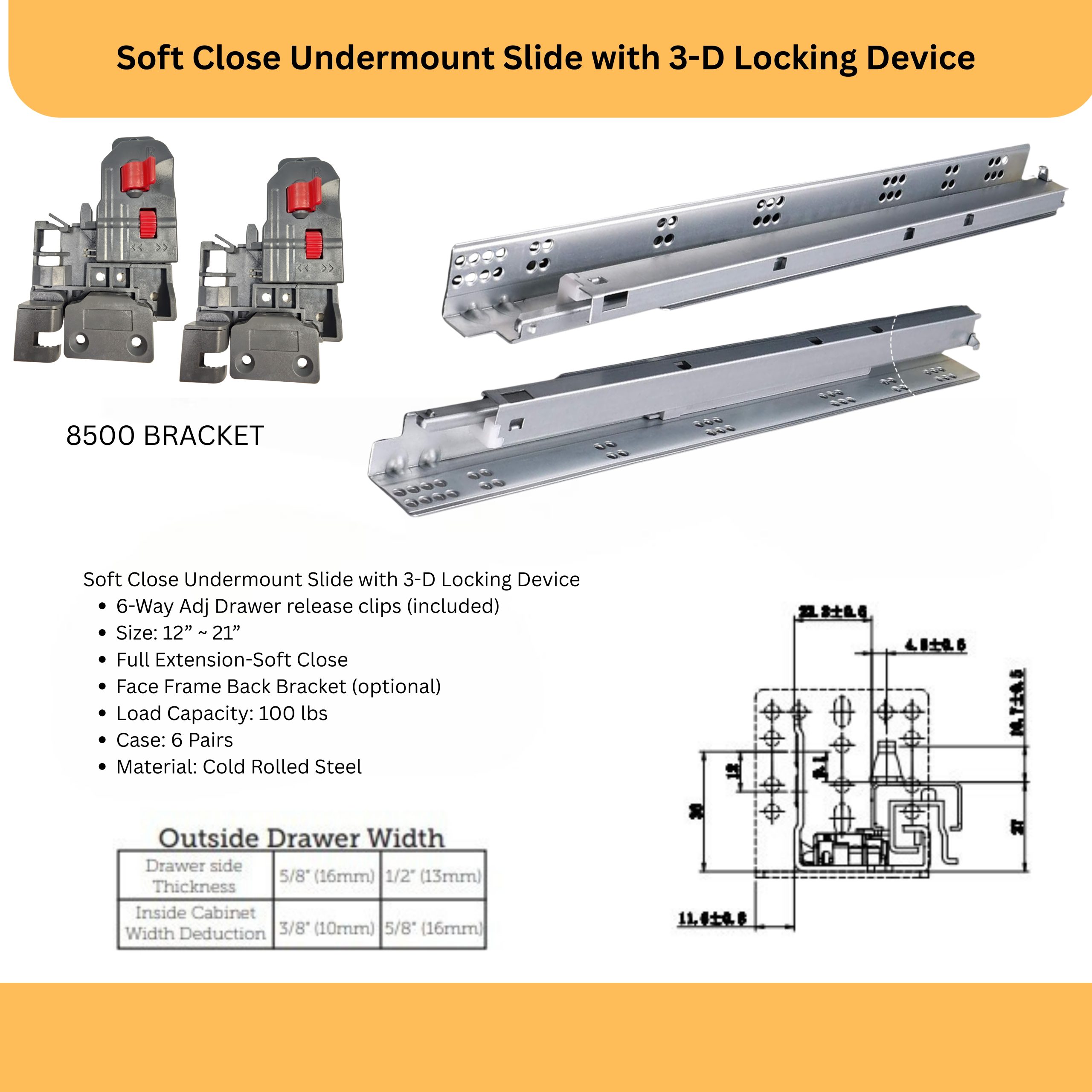 Usage Information: Full Extension Soft Close Slide